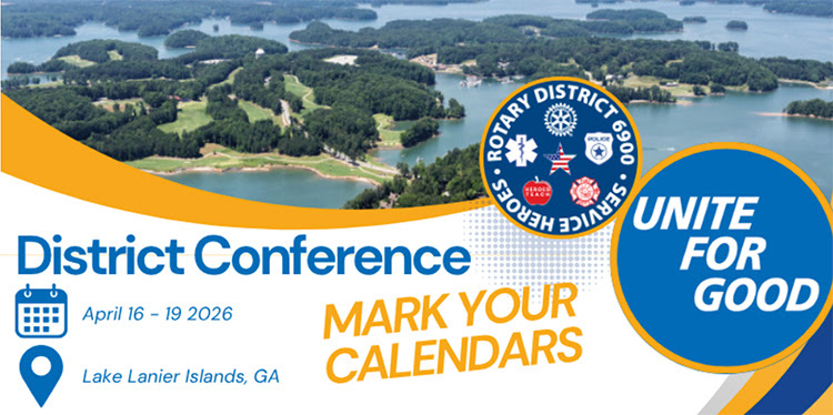 Join fellow Rotarians for an unforgettable 2026 District Conference as we celebrate the incredible 2025-26 Rotary Year under District Governor Steve Ivory! The conference will take place at the beautiful Lake Lanier Islands Resort this year — offering a fresh, fun setting for fellowship, inspiration, and celebration. Lots to do, including a scenic boat cruise, pickleball, nature walk, golf, and more.