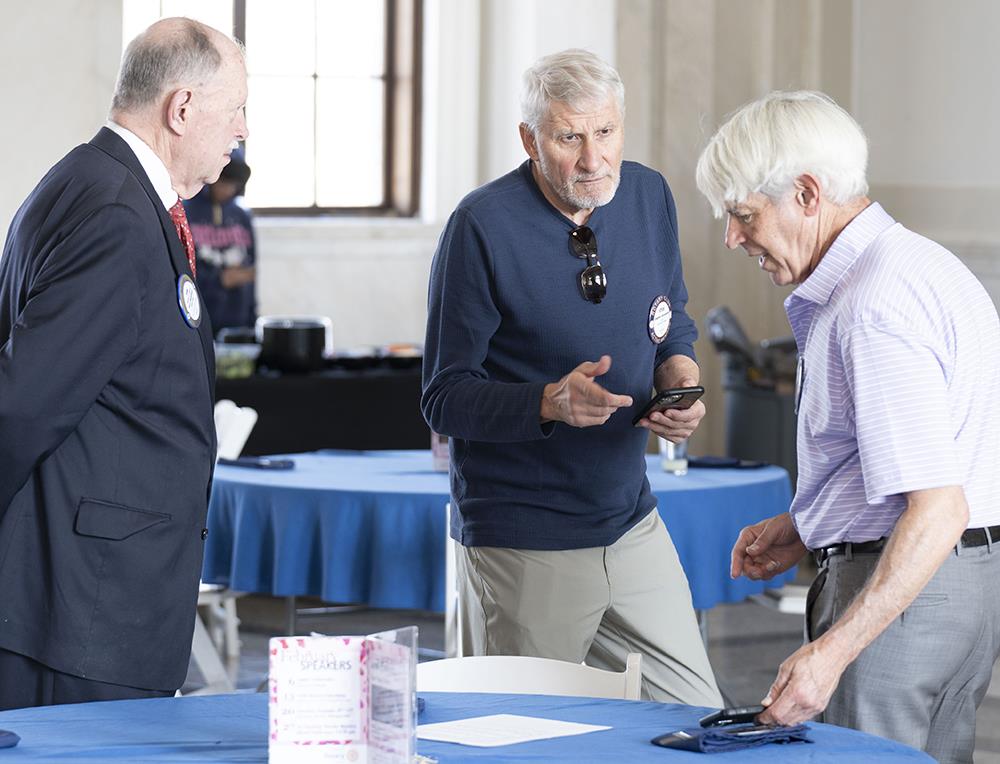 Tom Adams, Steve Szeremeta, and Charlie Lutin trade numbers